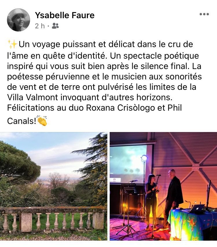 La rencontre avec la poétesse péruvienne Roxanna Crisologo en Mars 2024 en est un bon exemple.