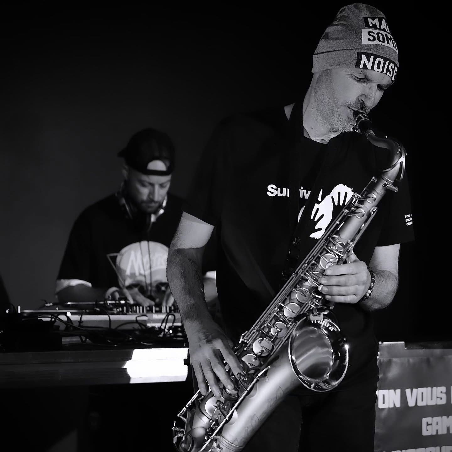 Il apporte sa touche free jazz au rap conscient et concis, exigeant et poétique, bourré de références historiques, philosophiques et spirituelles de l'excellent Prince Fellaga.