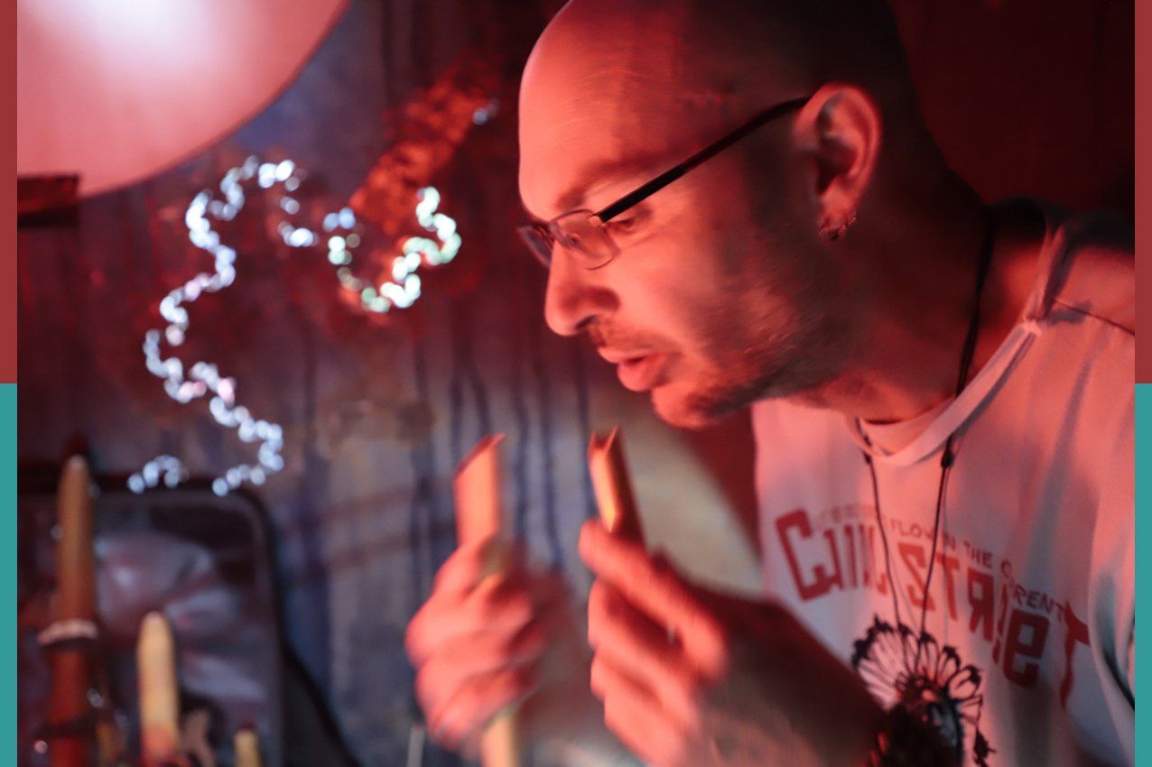 Accueillez de vos deux oreilles et de tout votre être cet instant de divination sonore, cette guidance spirituelle sans mot. Inspirées des musiques rituelles et traditionnelles, les vibrations sonores que vous offre l’artiste dissimulé derrière un écran opaque, vous connectent à l’univers et sont propices à la guérison.
